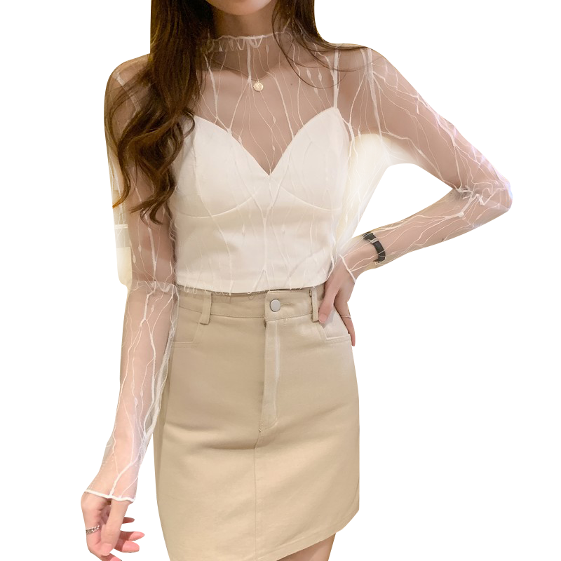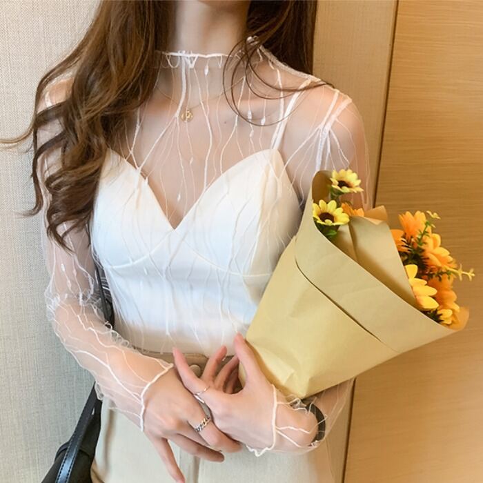 Spring and Autumn Simple Long Sleeves Fairy See-through Lace Mesh