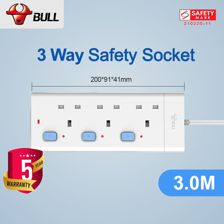3/4/5 Way Extension Socket (1.8/3.0/5.0 Meters Cable)