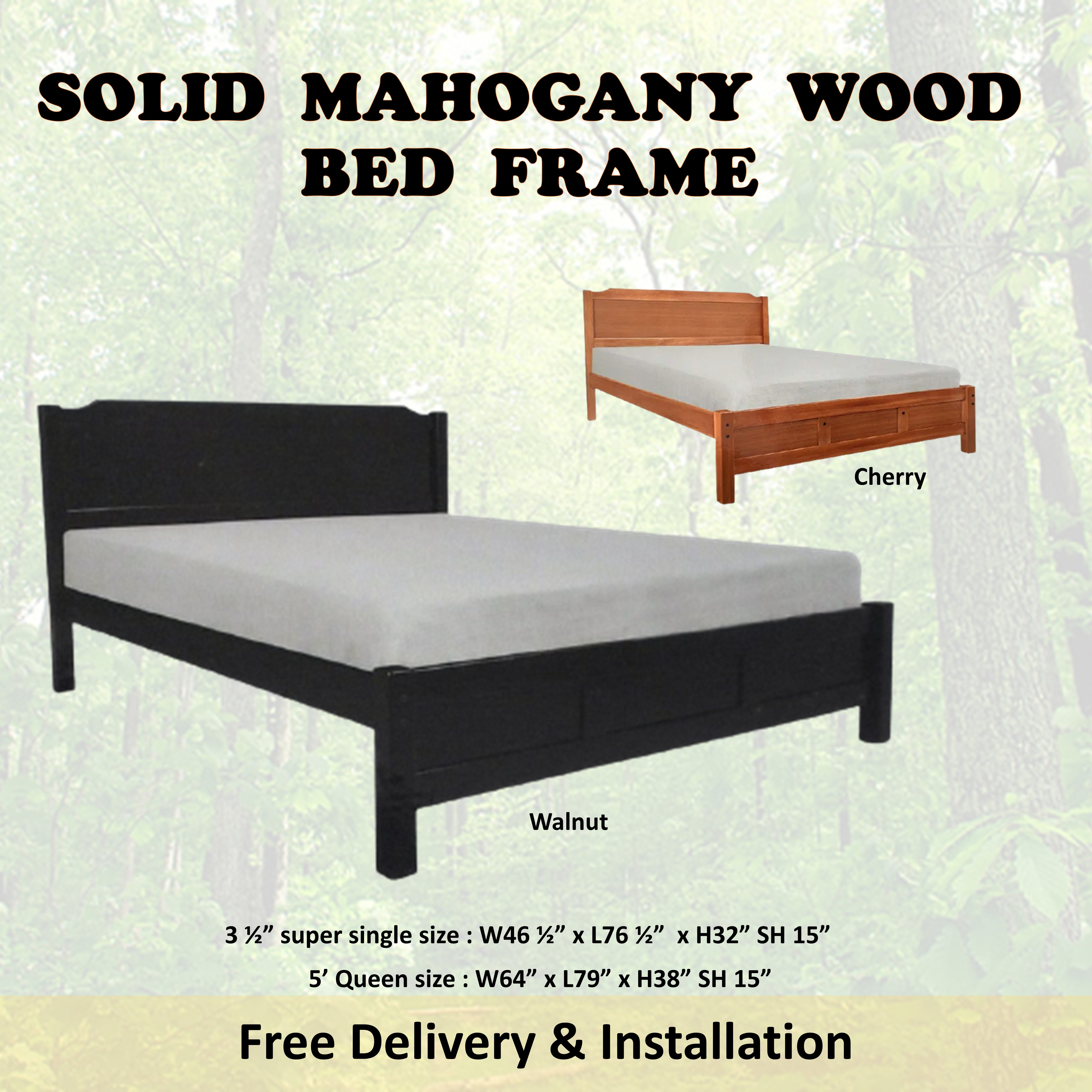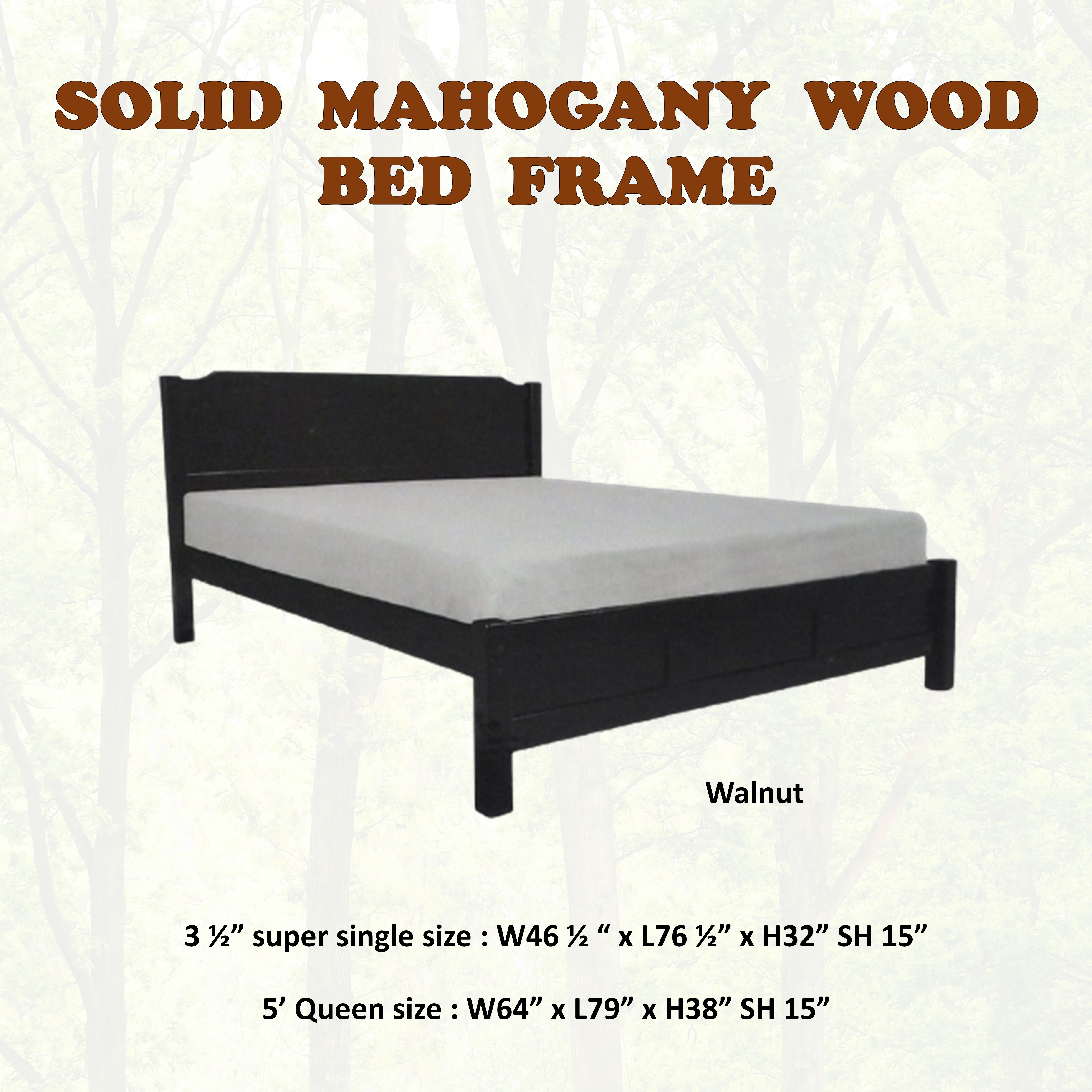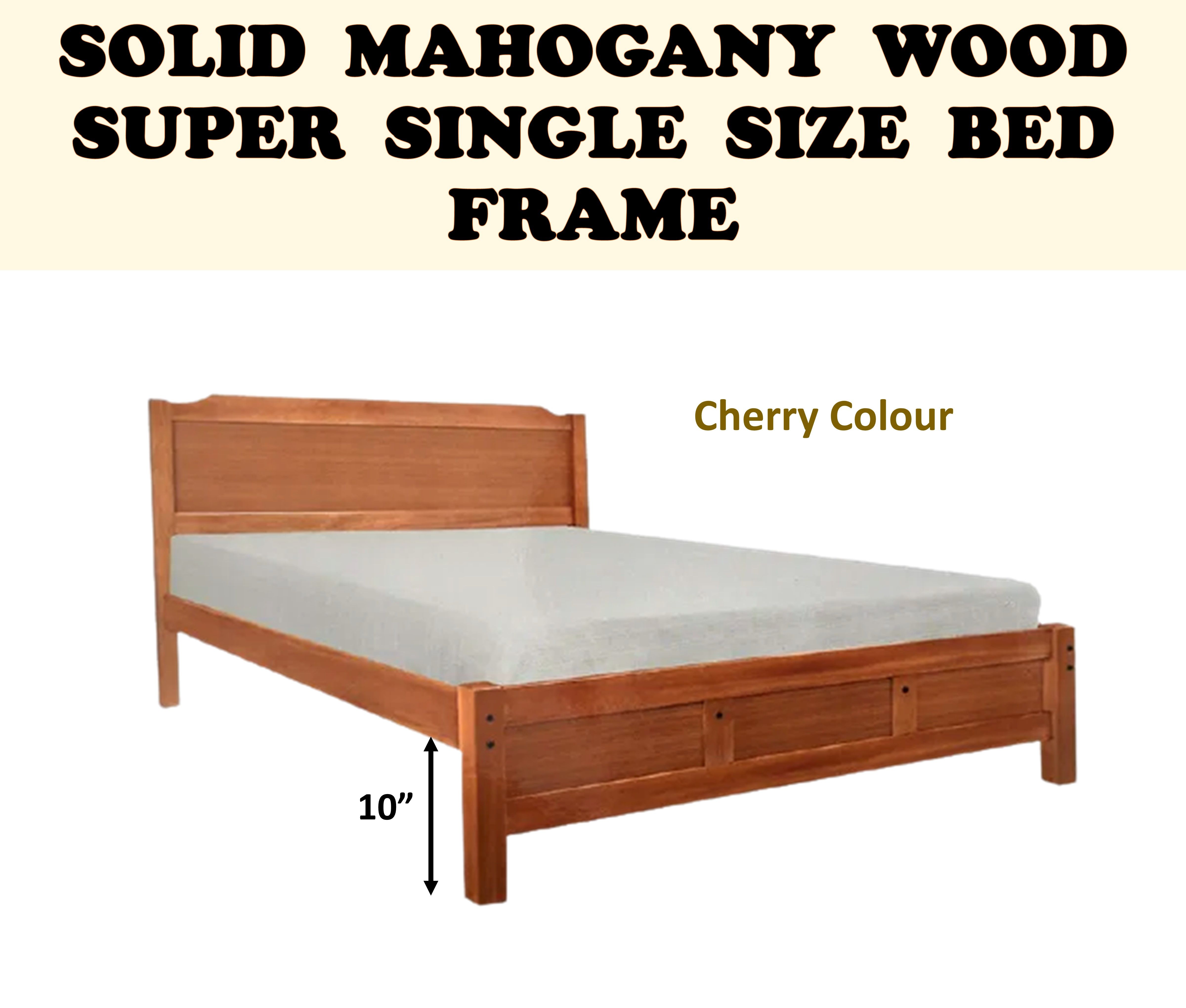 HANNA Mahogany Solid Wooden Super Single / Queen Bed Frame In Cherry & Walnut Colour