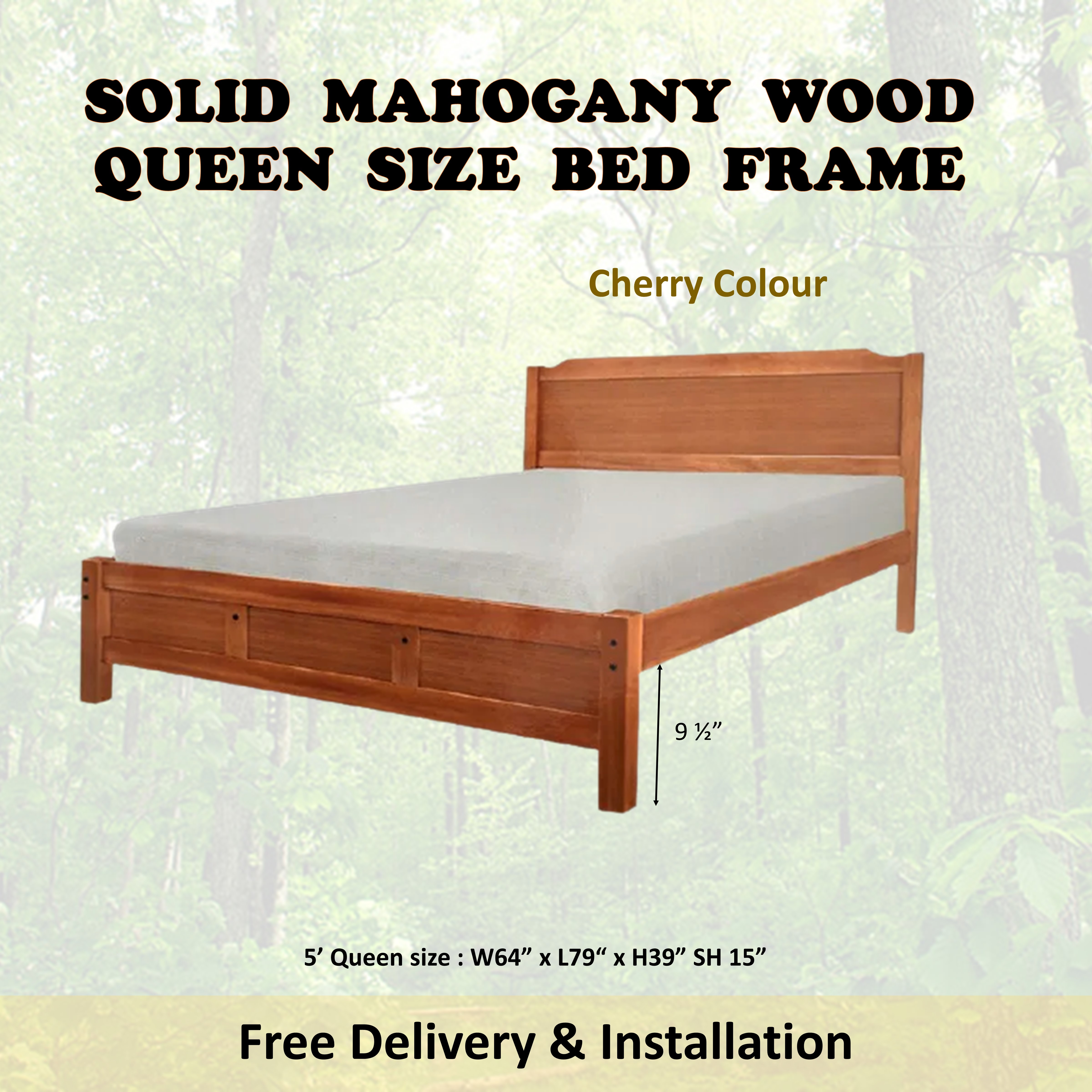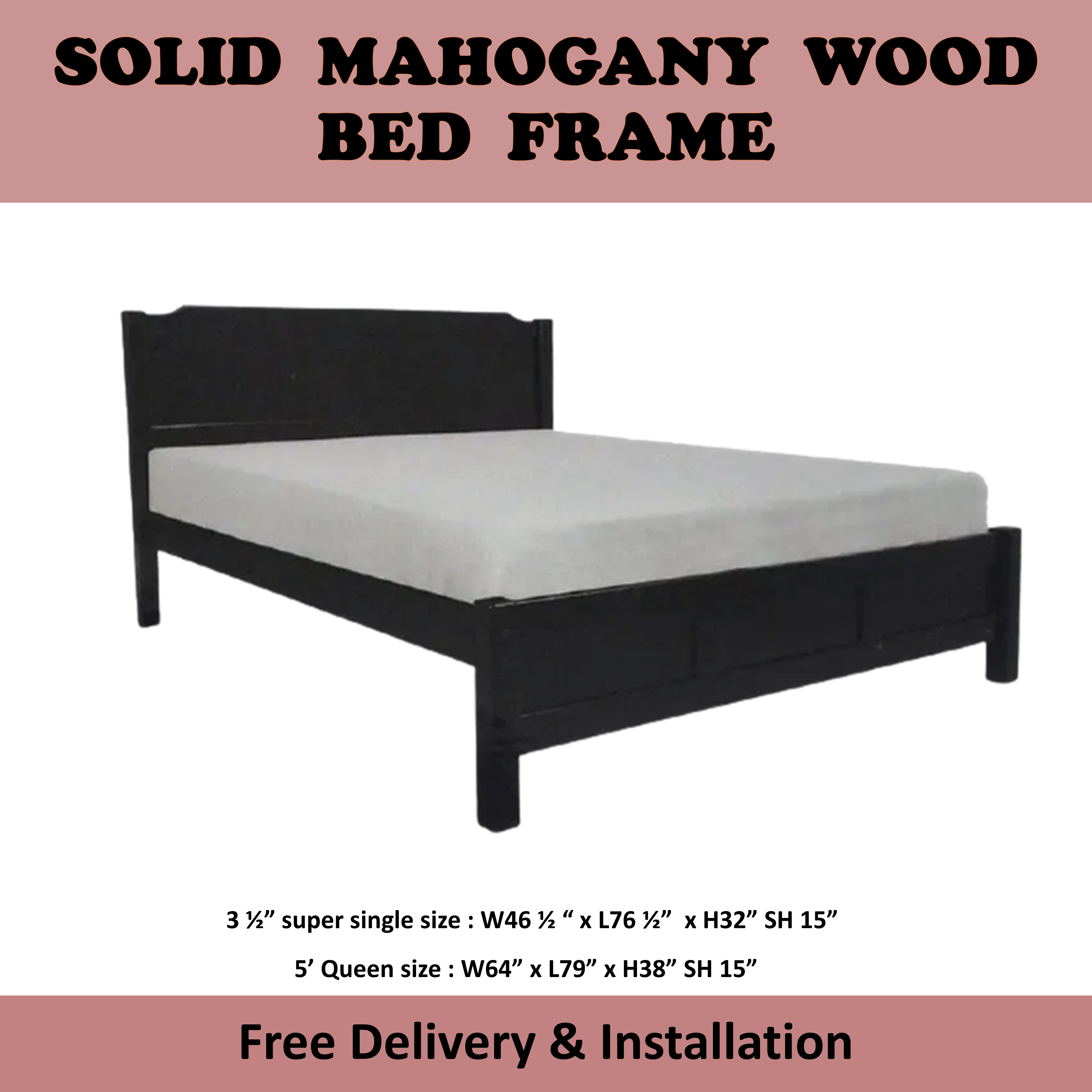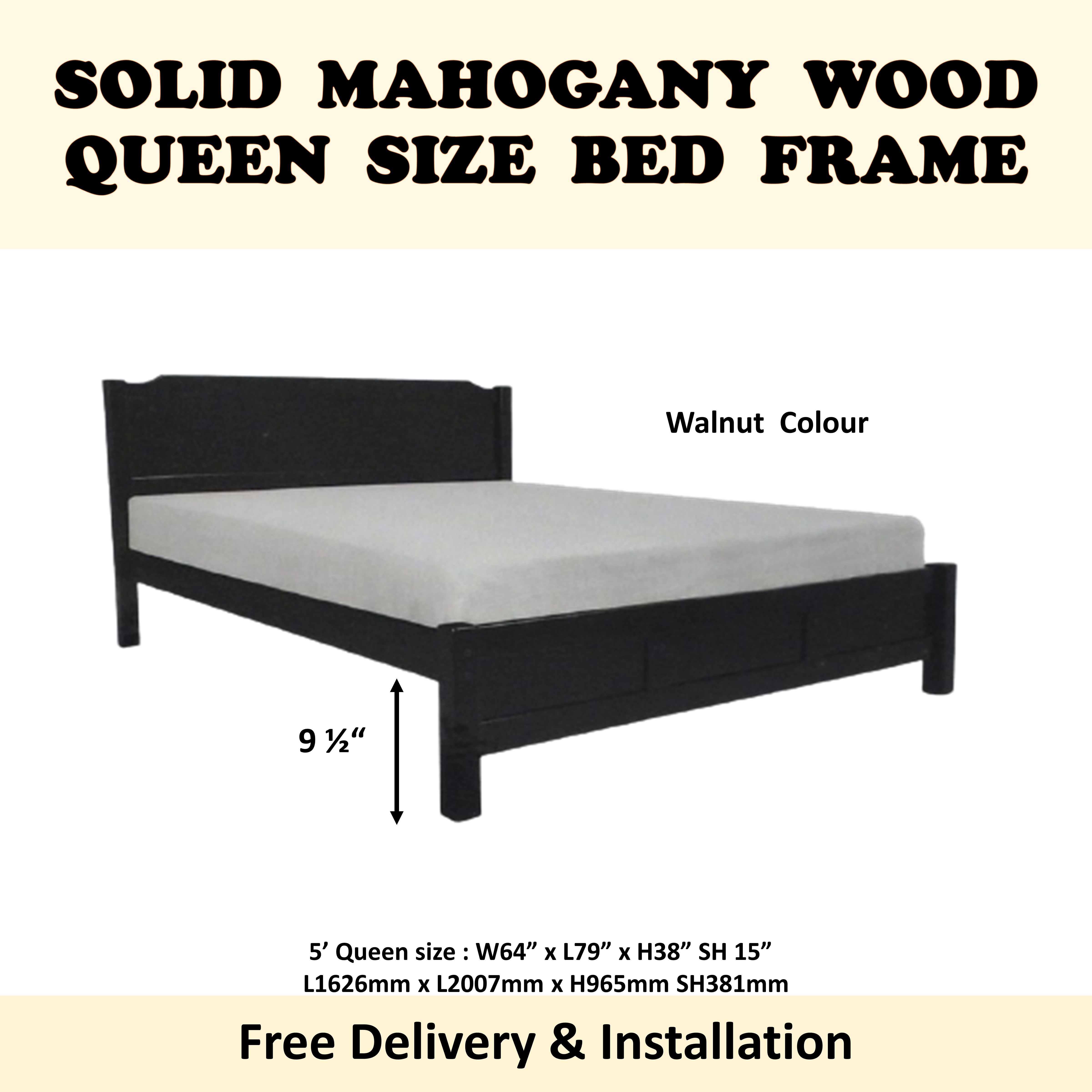 HANNA Mahogany Solid Wooden Super Single / Queen Bed Frame In Cherry & Walnut Colour