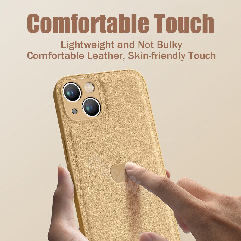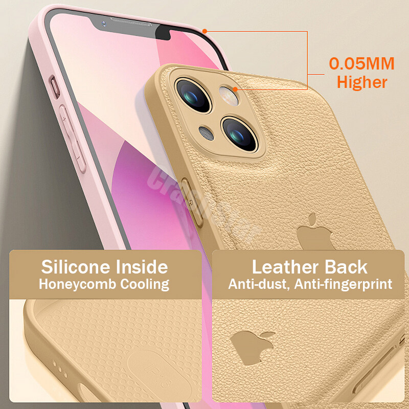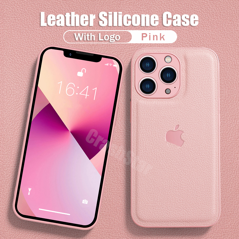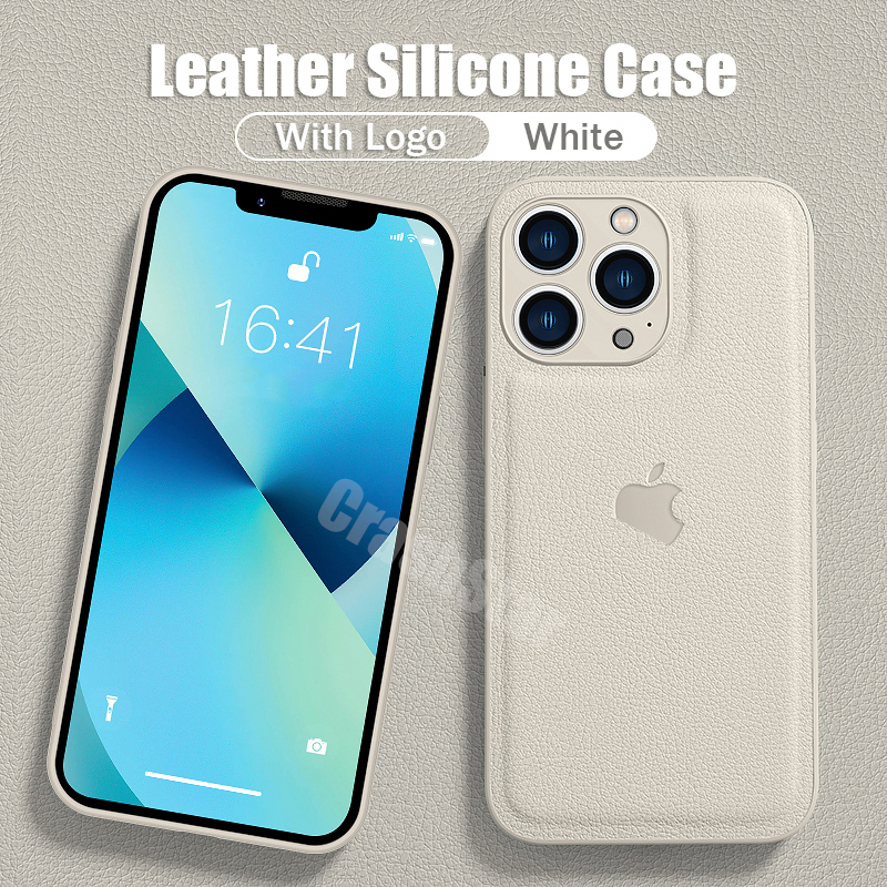 CrashStar With Logo Leather Add Silicone Phone Case For iPhone 14 13 12 11 Pro Max XS XR X 8 7 Plus + SE 2020 Shockproof Phone Casing Simple Soft Phone Cover With Full Cover Lens Camera Protection She