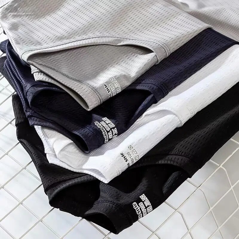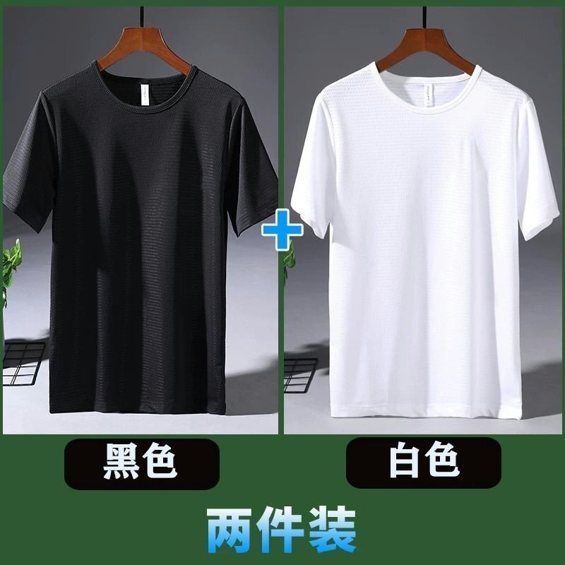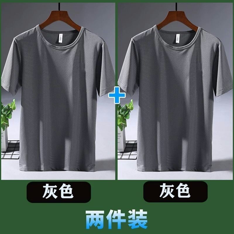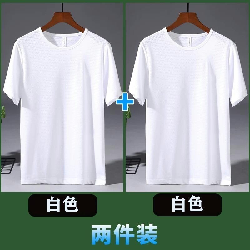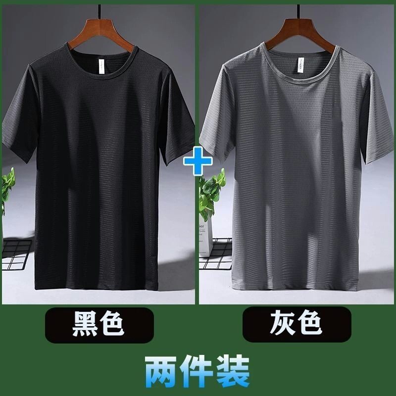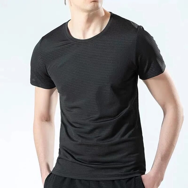 Large Size Ice Silk T-shirt Men's Mesh Short Sleeve Men's Loose Sports Quick-Drying Mesh Breathable Airable Shirt Summer Half Sleeve