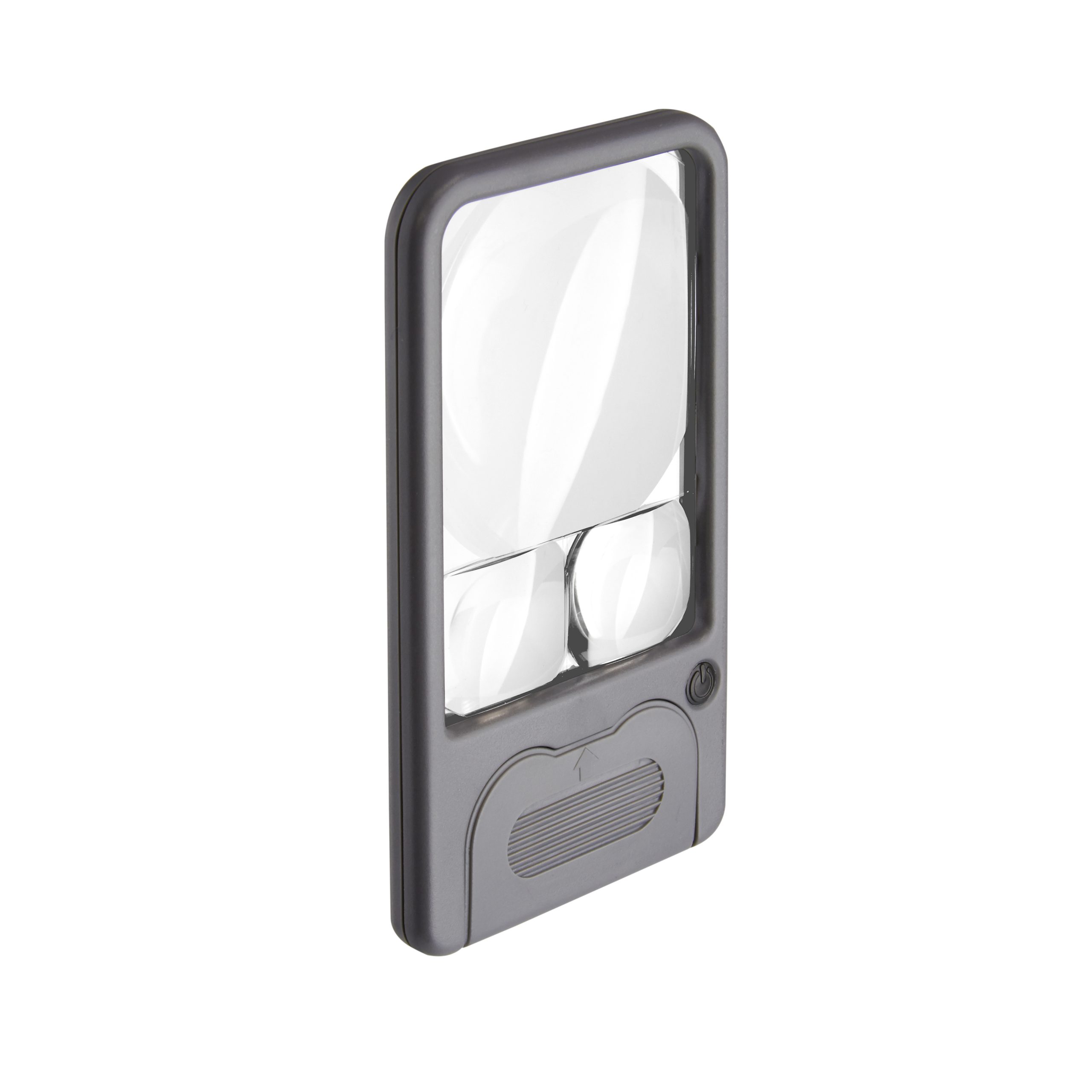 The PM-33, Pocket Magnifier™ with 3 Acrylic lenses 2.5x, 4.5x and 6x Power is a multi-power LED lighted magnifier. This handheld Pocket Magnifier™ has three magnifying powers: 6x, 4.5x and 2.5x. It features a crystal-clear acrylic lens. It is an ideal low vision aide. The Pocket Magnifier™ is also perfect for reading fine print. It is so compact that it can easily fit in a pocket or purse.