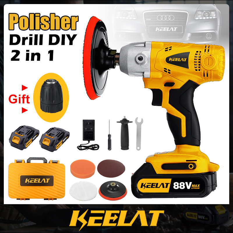 KEELAT 2 in 1 Car Polisher Cordless Electric Drill 800W DIY Mesin Electric Polish Kereta Car Polishing with 5 inch Drill and Polishing Machine Buffer Sander Car Care Sanding Waxing Tools Car Accessori