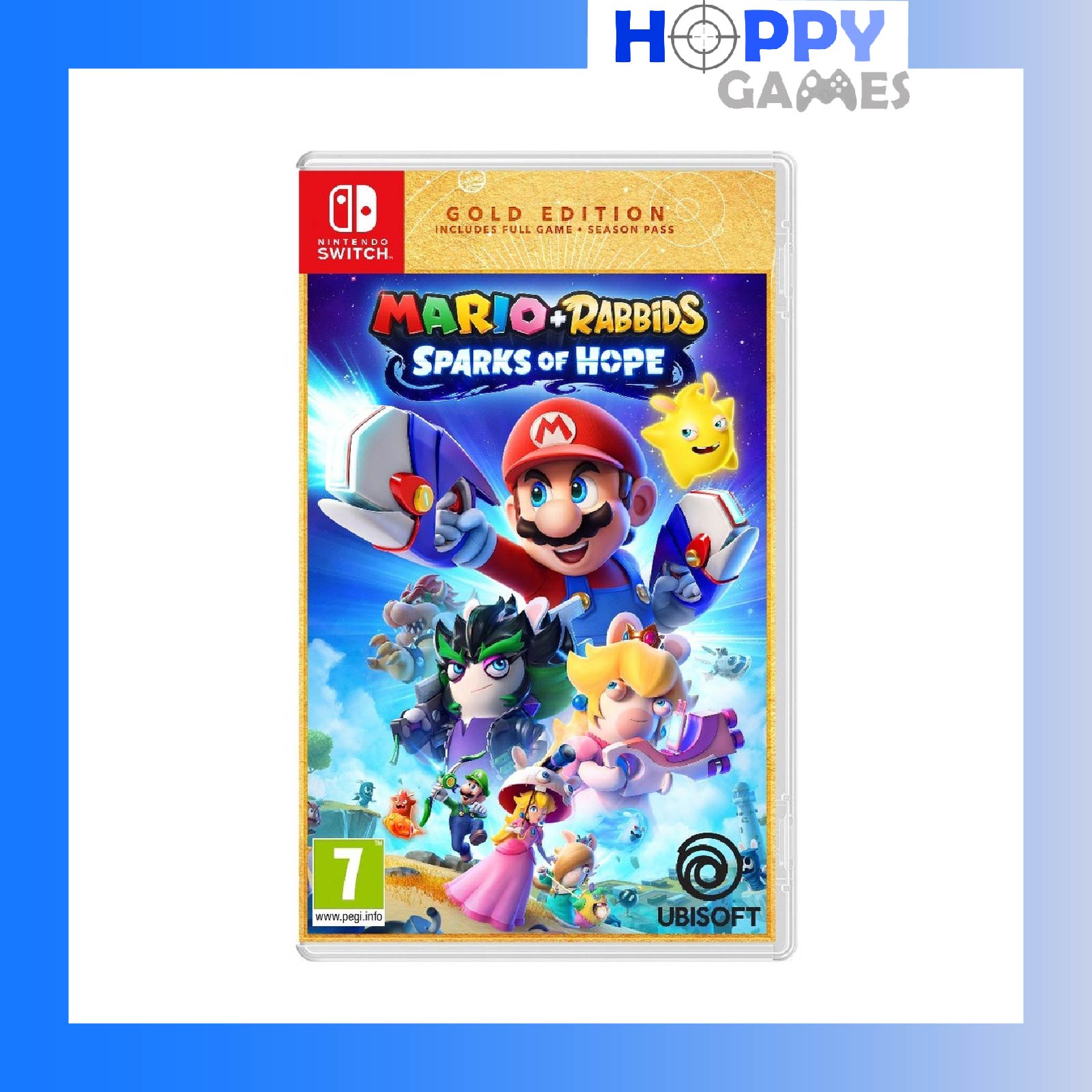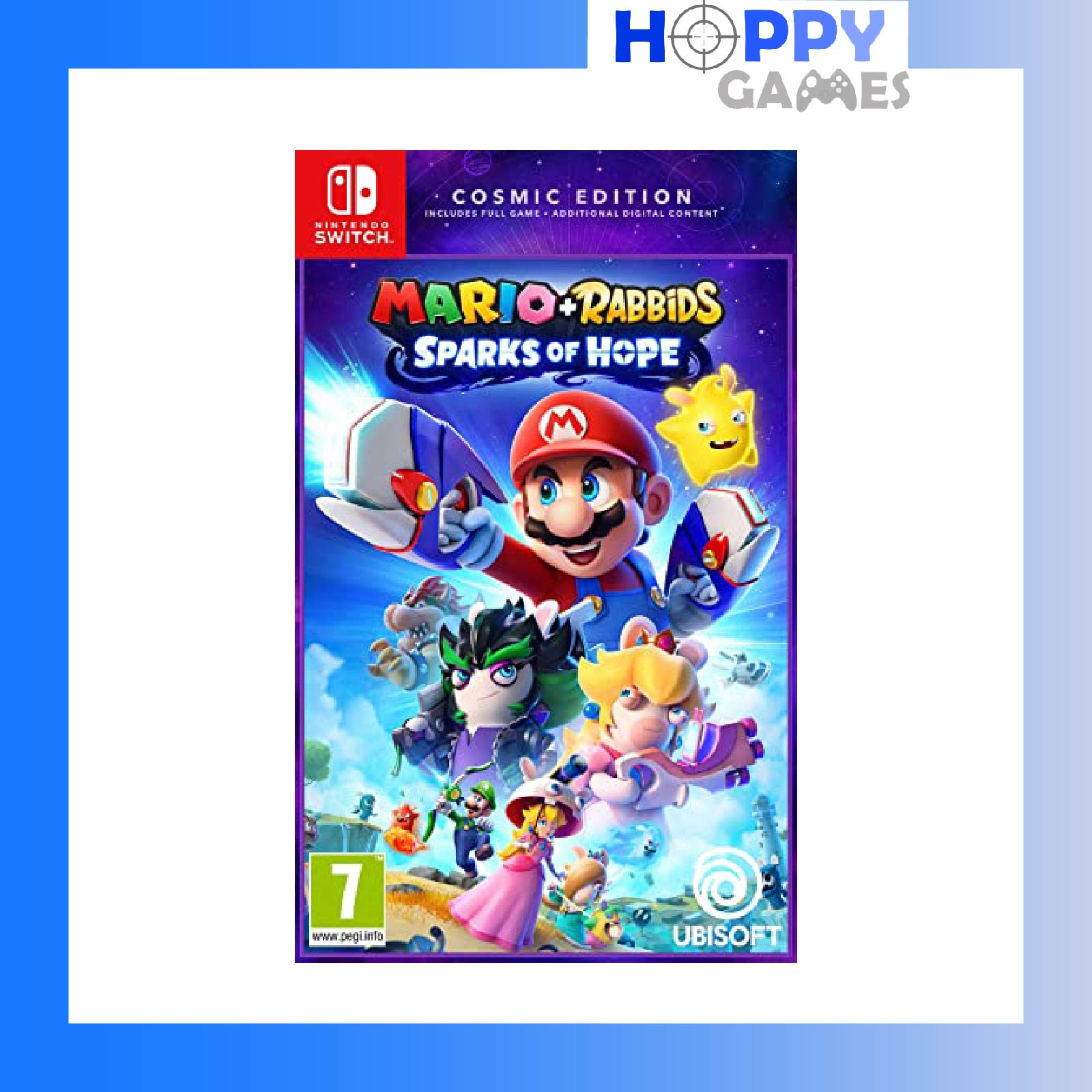 Team up with Mario, Luigi, Princess Peach, Rabbid Peach, Rabbid Luigi, and their friends on a galactic journey to defeat a malevolent entity and save your Spark companions. Explore planets throughout the galaxy as you uncover mysterious secrets and compelling quests!