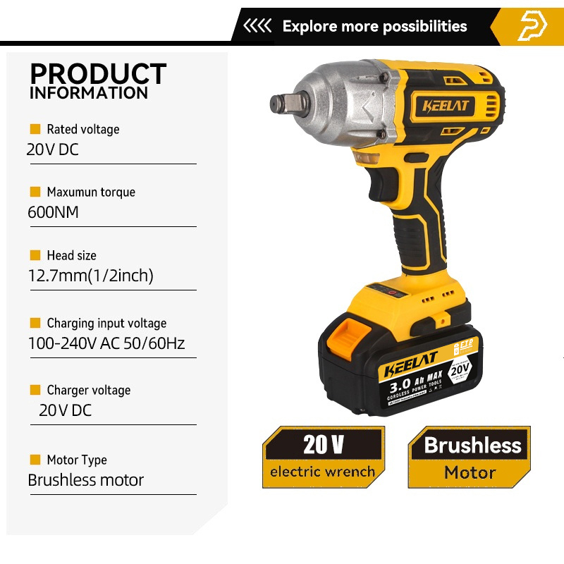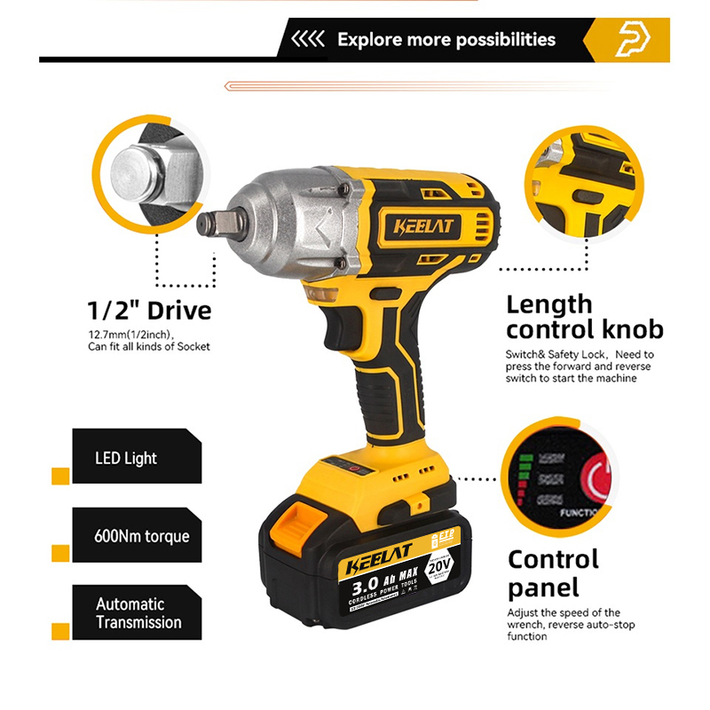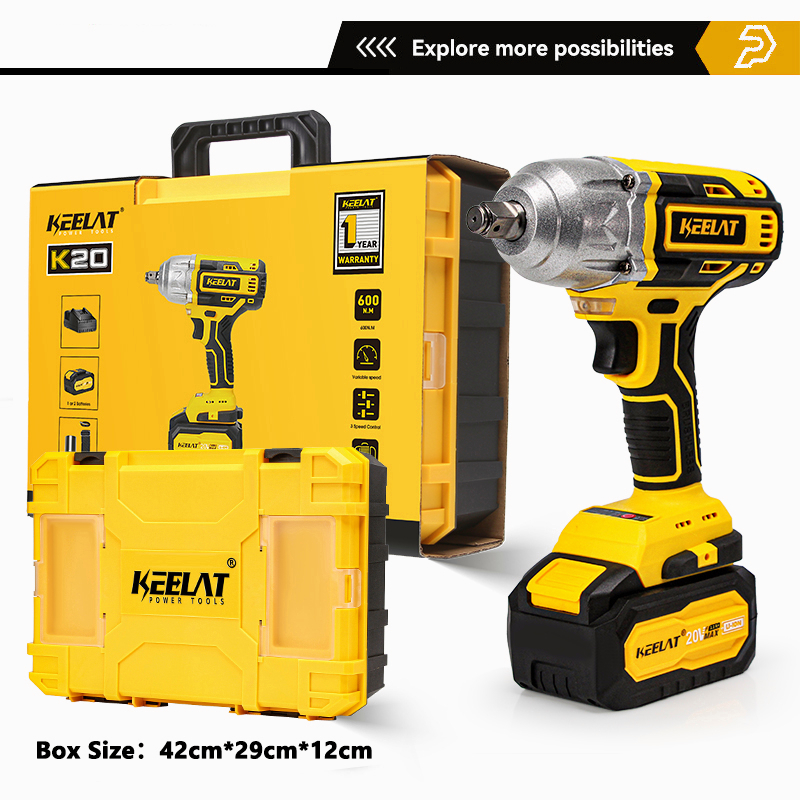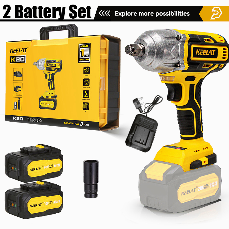 KEELAT KID006 600N.M Electric Impact Wrench Cordless High Torque 1/2"1/4" Screwdriver Drill Heavy Duty Professional Cordless Impact Driver Socket Power Tool Rechargeable 20V Battery