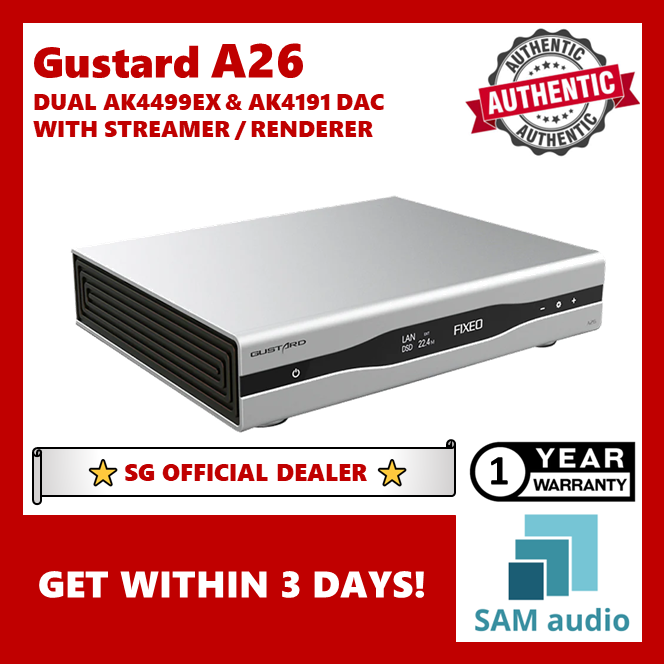 > The GUSTARD A26 DAC combines two AK4499EX DAC chips with one AK4191 modulator from Asahi Kasei Microdevices. With independent power supply and grounding for each channel, separate digital-analog architecture eliminates interferences from the beginning.