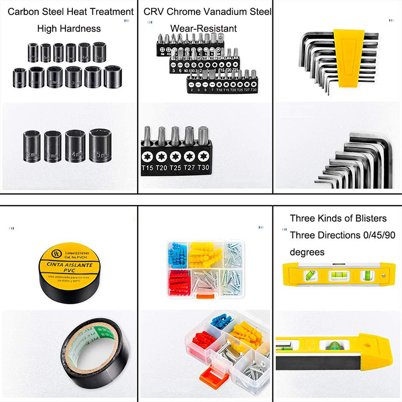 Ready stock in SG ,2-3days arrive your home! About Brand Name : KEELAT About Warranty: We are a local seller in SG. We provide a 12-month local warranty. Product failures can be replaced 1 to 1 within 6 months. The shipping fee for replacing the product within 1 week will be paid by the seller, and the shipping fee for more than 1 week will be paid by the buyer. ............................................................................ ............................................................................ Quality Assurance: - Industrial Heavy Duty Hardware Standard - 100% Brand New in Solid Box - Excellent Repairing & DIY Experience with Quality Tools - Include Hardware Box + 108 Pcs Tools Inside - 1 Box for All Tasks & Jobs - Easy to Carry & Keep Description: ✓ Household Essential Tools for Almost All Minor Maintenances. ✓ Multi-function for Home Improvement for Furniture Assembling, Lighting, Woodwork, Plumbing, Car Repairs. ✓ Hight Quality Materials with Heat Treated and Chrome Plated to Resist Corrosion. ✓ All Tools Meet or Exceed ANSI Critical Standards. ✓ Tools are Made from Durable Metal. ✓ Measuring Tape, Screwdriver, Combination Pliers, Digital Voltage Tester, Utility Knife,Claw Hammer, Insulation Tape, Adjustable Wrench. ✓ Perfect for Hammering, Measuring, Cutting, Screwing. Specification: Product size (L x W x H): 35 x 30 x 8 cm Package Weight: 4.1 KG Packaging Method: Paper Box + Bubblewrap + Waterproof Black Stretch Flim + Fragile Sticker Brand: HABO Number of Pieces: 108 Material: Chrome Vanadium CR-V Suitable Use: Heavy Duty / Industrial / Household Types: Ratchet, Wrenches, Sockets, Hand Tools, Etc Package: Box Application: Maintenance and Repair Works Package Include: 2 x INNER HEXAGON 1 x MEASURING TAPE 1 x FLATBLADE SCREWDRIVER 1 x SCREWDRIVER HANDLE 1 x CROSSBLADE SCREWDRIVER 1 x OPEN END WRENCH 1 x LEVEL EQUIPMENT 1 x CLAW HAMMER 1x RATCHET WRENCH 1 x BATCH HEAD GROUP 1 1 x BATCH HEAD GROUP 2 1 x BATCH HEAD GROUP 3 1 x SOCKET ROD 1 x CLOCK SCREWDRIVER 1 x NEEDLE NOSE PLIERS 1 x ADJUSTABLE WRENCH 1 x ELECTRONIC PLASTERS 1 x EXPANSION TUBE FULL SET 1 x SOCKET SET &ETC