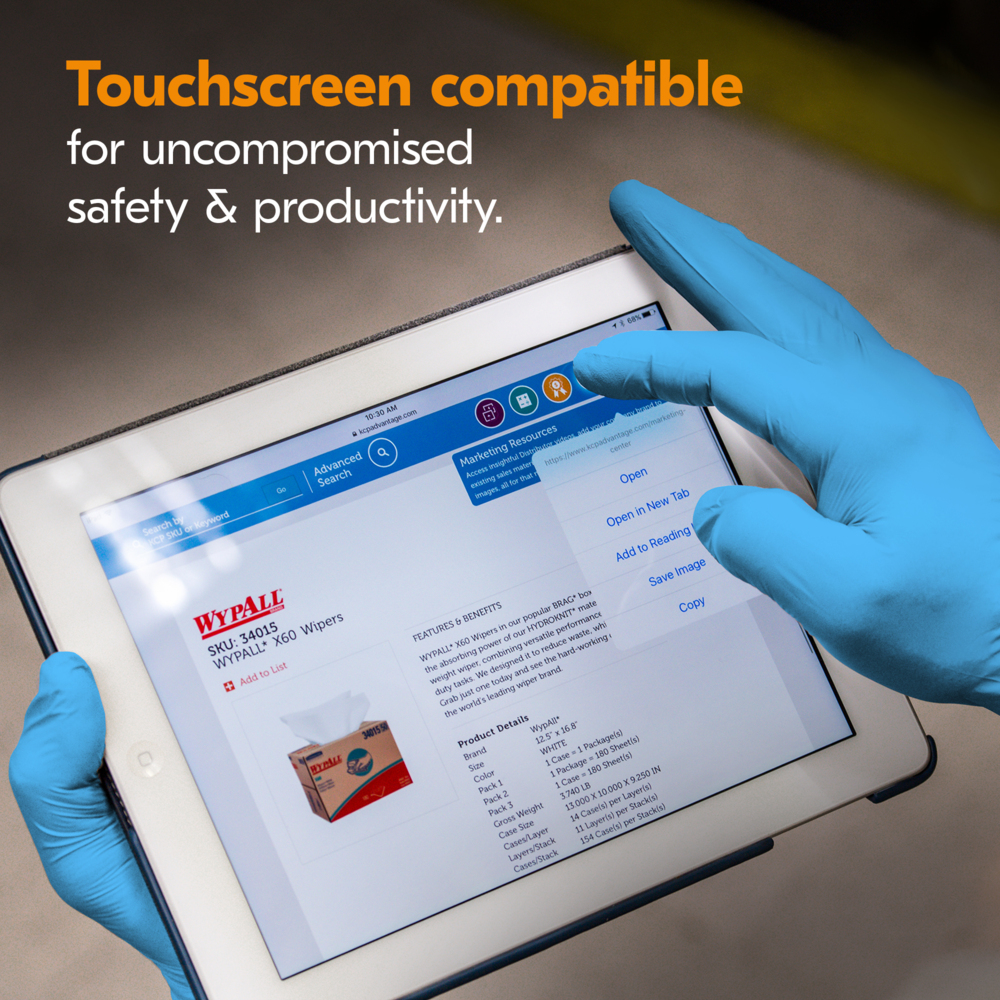 KleenGuard™ Personal Protective Equipment (PPE) enables rather than inhibits – allowing for maximum productivity and safety for you and your employees. When you need a thin mil glove to help protect without sacrificing productivity, KleenGuard™ G10 Flex Blue Nitrile Gloves are a great choice. Suitable for general purpose applications (as in painting, automotive and small parts handling, and precision electronic assembly) and food handling, these blue nitrile gloves are 3.0 mil thick and 9.5” inches long. They are powder-free, ambidextrous, touchscreen compatible and are not made with natural rubber latex. With their signature blue color, the KleenGuard™ G10 Flex Blue Nitrile Gloves meet US FDA regulations for materials used in food contact applications. These blue nitrile gloves are a leading choice across a variety of industries because they are comfortable to wear, provide excellent tactile sensitivity and deliver reliable protection for the task at hand. Making the right Personal Protection choice is difficult. Perform with distinction with KleenGuard™ Personal Protective Equipment (PPE).
